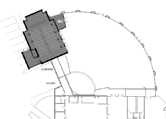 The current plan anticipates about 150 - 200 seats. If selected as a priority to build, the chapel would be located next to the Fellowship hall. It would take a small portion of the Fellowship Hall and a portion of the exterior. It would only take seven or eight parking spaces from the adjacent parking lot.
